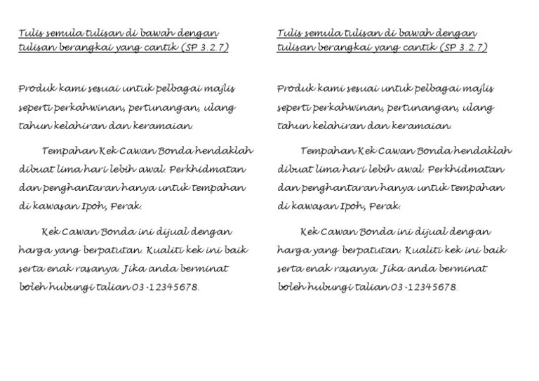 Latihan bahasa melayu tahun 5 mengenai tulisan berangkai untuk murid tahun 5 sekar 2021.